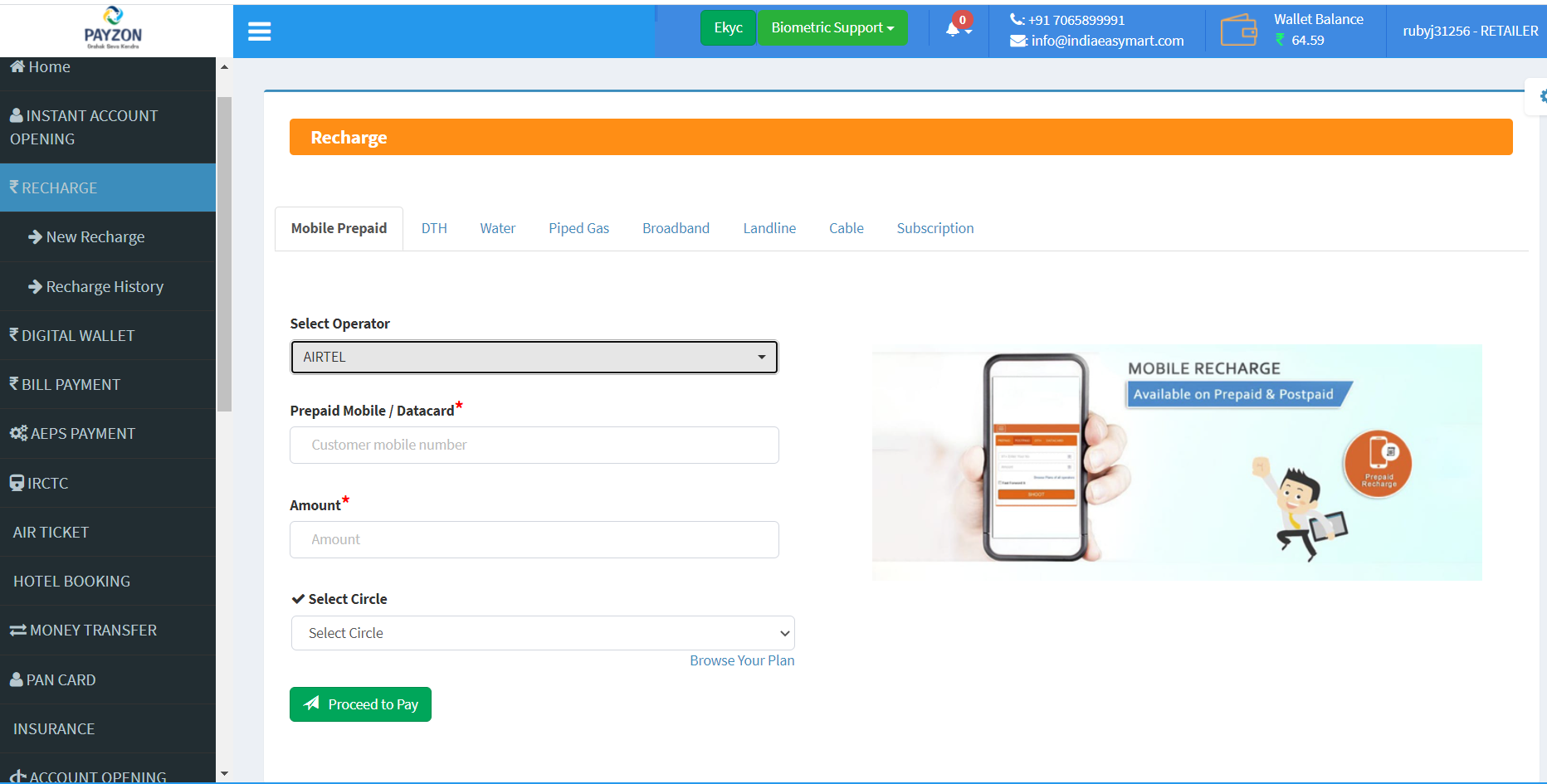"Excellent aeps and money Transfer portal.Cheap and best.Instant move to bank facility."